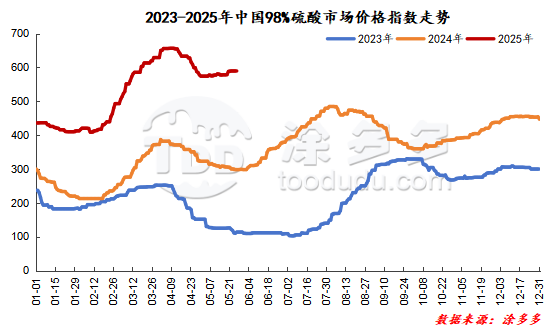 ]article_adlist-->据涂多多数据测算,5月26日硫酸市场价格指数为592.33,较上一工作日上调2.67,涨幅0.45%。